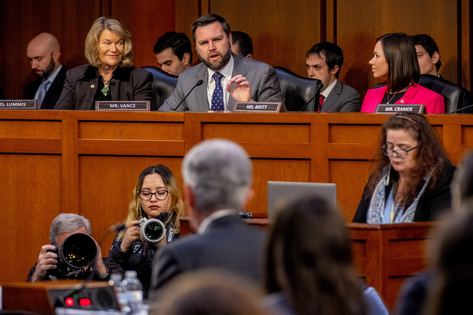 范斯在2023年3月的华盛顿参议院银行委员会听证会上询问鲍威尔关于美元作为全球储备货币的利弊。(美联社照片/安德鲁·哈尼克)摄影师:安德鲁·哈尼克/美联社照片尽管有各种言论,但在过去一周的报告中,包括摩根士丹利和德意志银行在内的银行得出结论,特朗普胜选仍然很可能会提振美元。