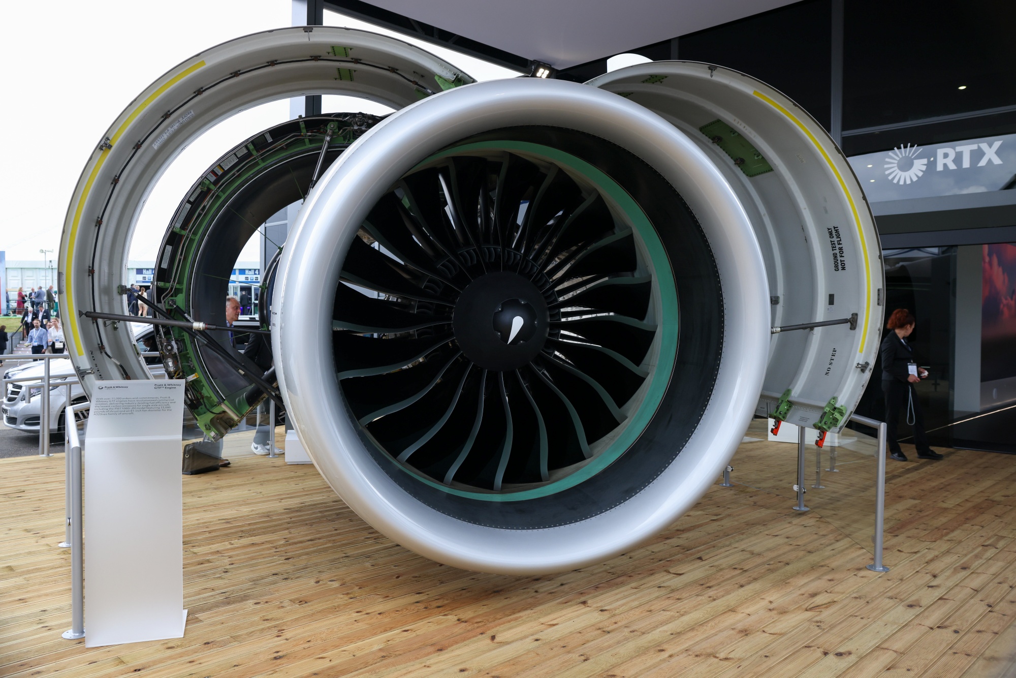 普拉特&惠特尼GTF涡扇航空发动机在7月23日法恩伯勒国际航展上展出。摄影师:Hollie Adams/BloombergRTX公司第二季度利润超过了华尔街的预期,航空旅行需求旺盛推动了该公司喷气发动机和军事硬件的商用航空业务。