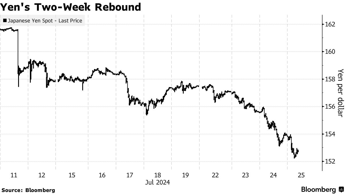 尚不清楚这一引发全球震荡的上涨是否标志着日元更持久的转折,这可能在下周得以确定。大约90%的分析师认为,日本央行(BOJ)可能于7月31日加息,尽管这不是主要预期。另一方面,美联储面临越来越大的压力,要求在同一天开始削减。