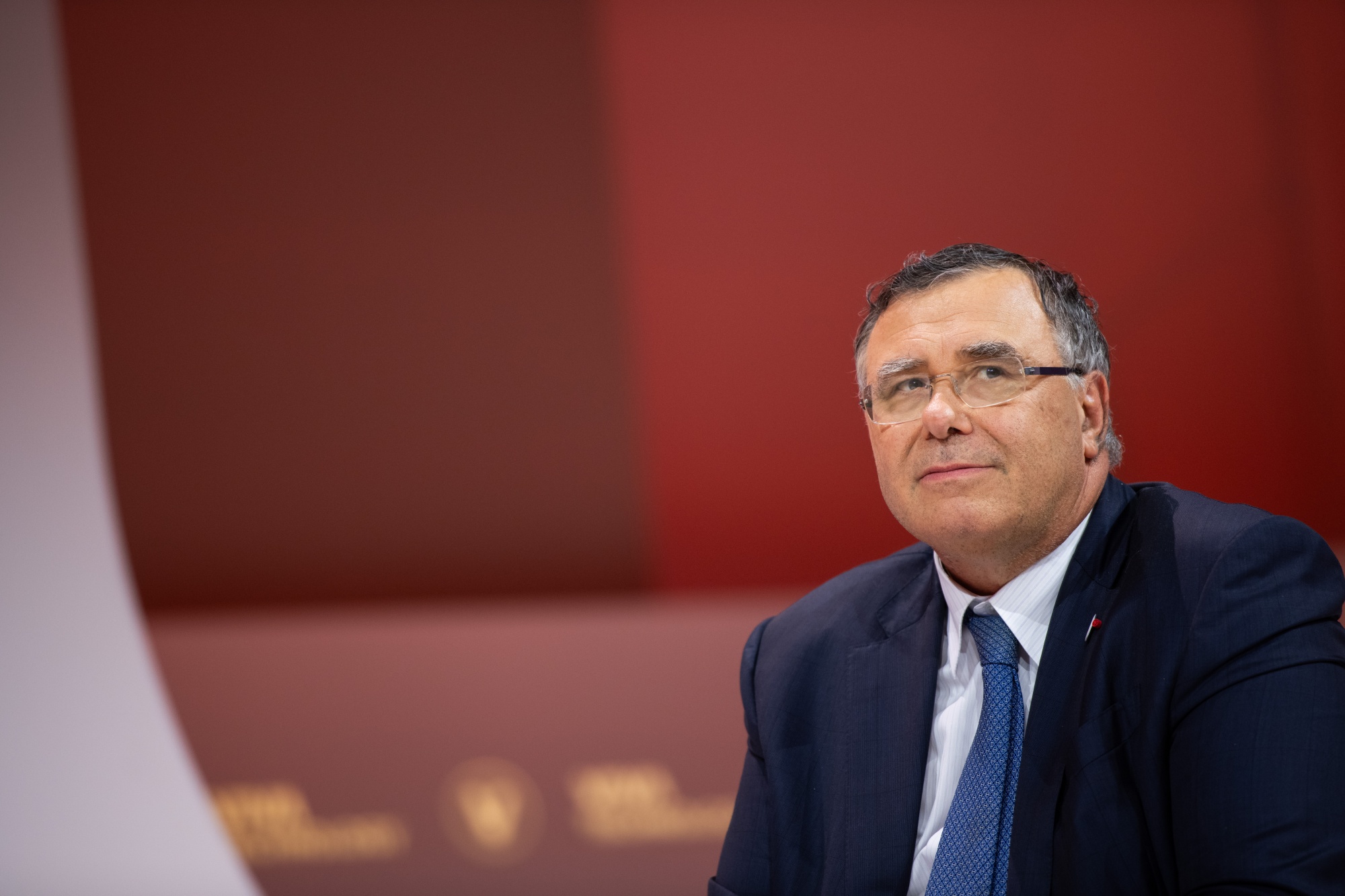 摄影师:本杰明·吉雷特/彭博社道达尔能源公司首席执行官帕特里克·普安尼表示,这家法国能源巨头正在推进其计划,在纽约上市股票,以吸引更多美国投资者。