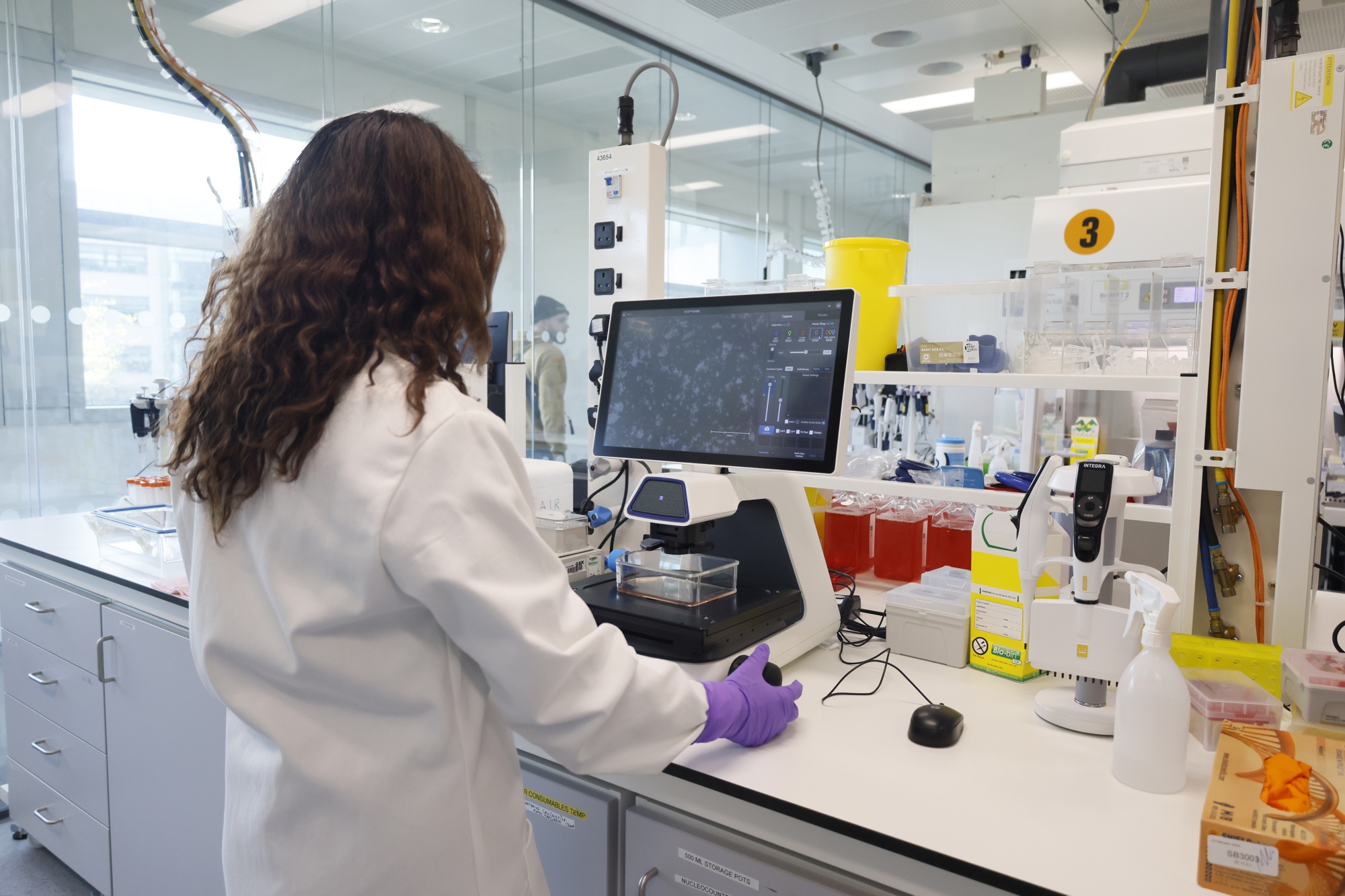 一位科学家在英国史蒂文奇的GSK实验室工作。