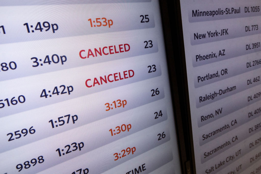 达美航空取消了6,700个航班。