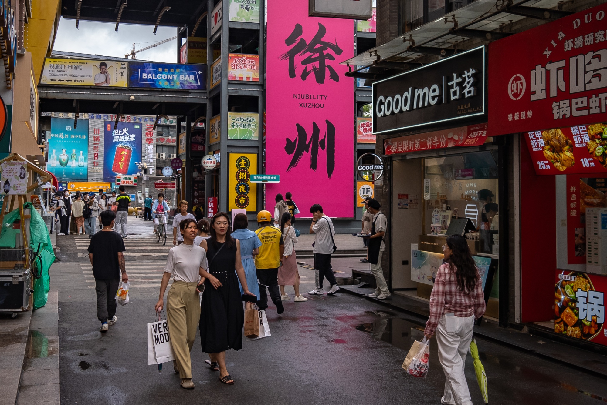 人们在2024年7月4日星期四在中国江苏省徐州购物。该城市已关闭煤矿和钢铁厂,由于其自然资源枯竭,转而发展三个领域:新能源、机械建设和新材料。来源:彭博社