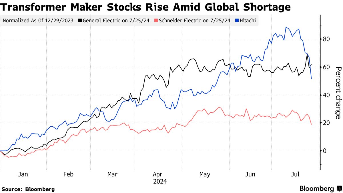 今年,包括通用电气公司、法国施耐德电气公司和日本日立公司在内的顶级变压器制造商的股价都有所上涨。