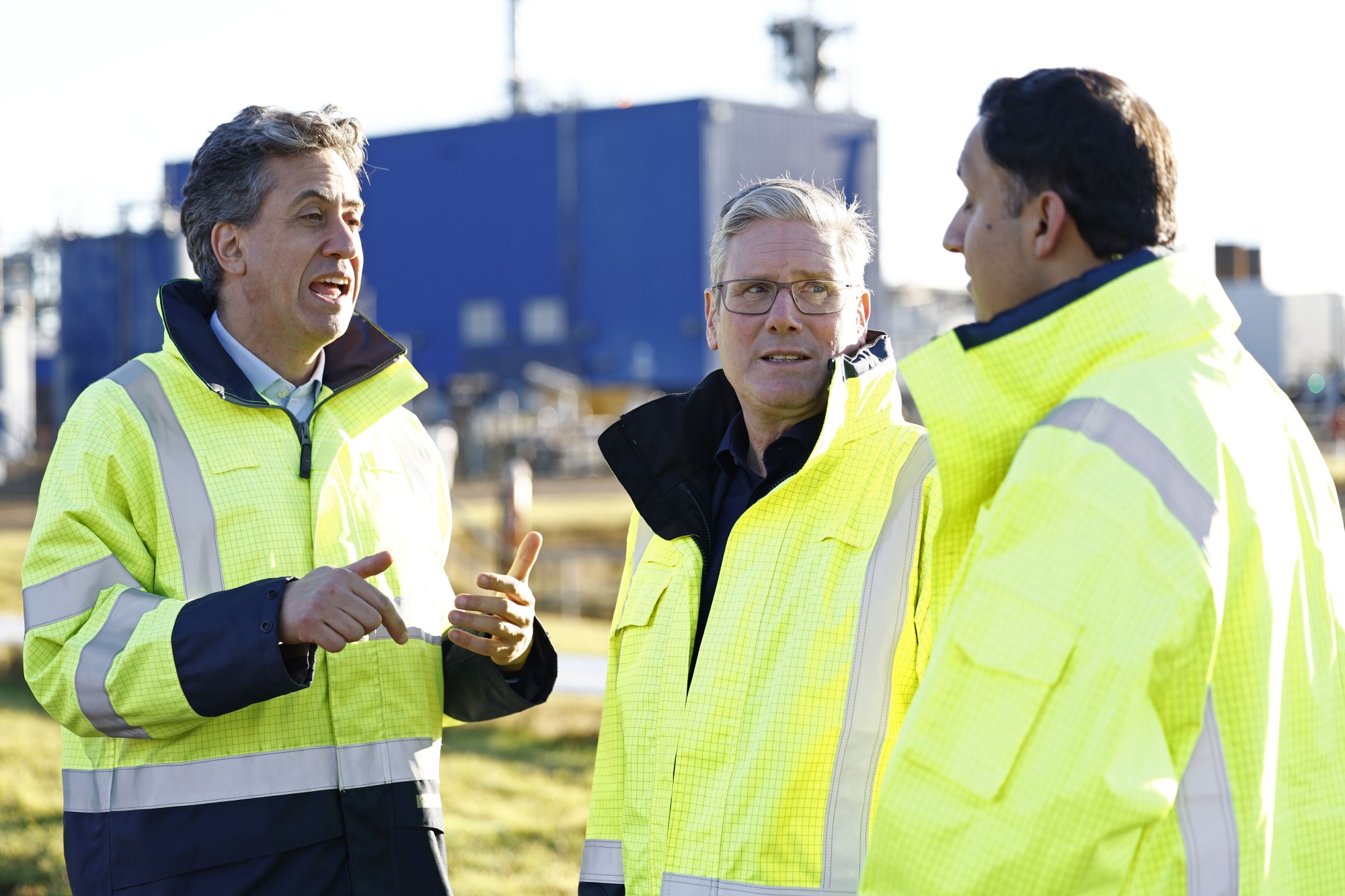 埃德·米利班德(Ed Miliband)(左)和凯尔·斯塔默(Keir Starmer)在苏格兰彼得黑德(Peterhead)的一个天然气终端。