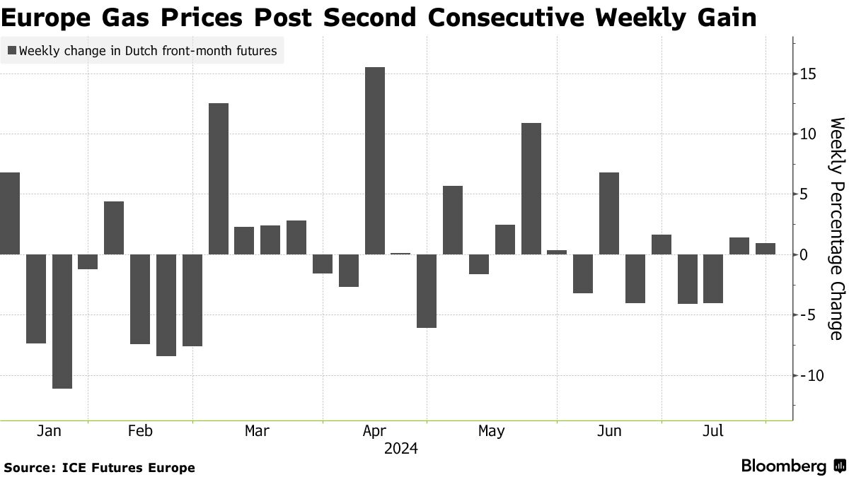 影响市场的最新利好因素是澳大利亚一个液化天然气出口工厂的停机。Ichthys LNG正在修复其两个列车中的一个,因为出现了一个未经计划的问题。这可能会导致全球供应收紧,尽管从挪威这个最大供应国家的供应已经反弹。美国一个关键的液化天然气工厂也正在恢复出口,飓风贝丽尔过后。