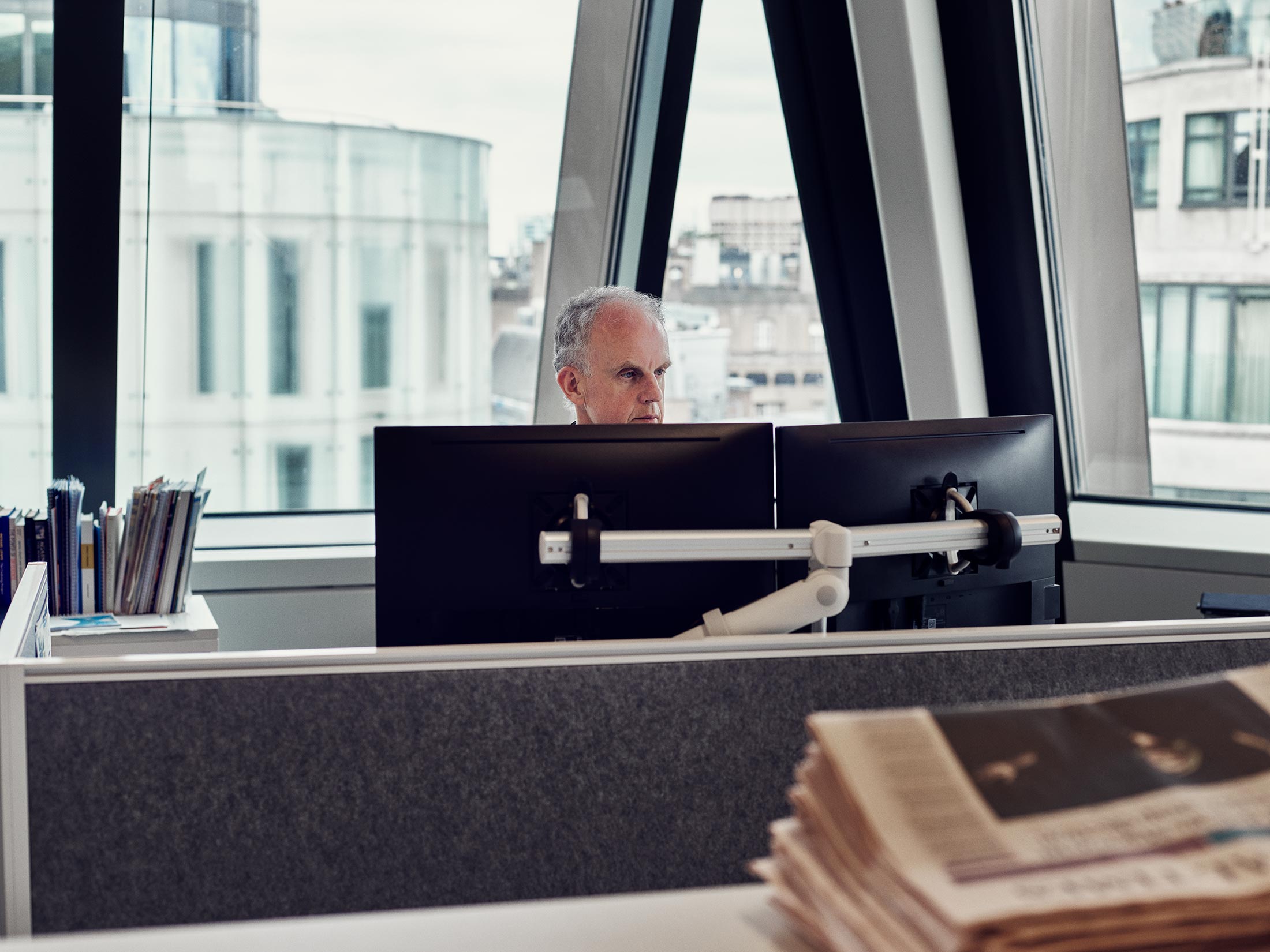 Impax创始人伊恩·西姆在他的伦敦办公室。摄影师:Finn Taylor for Bloomberg Markets
