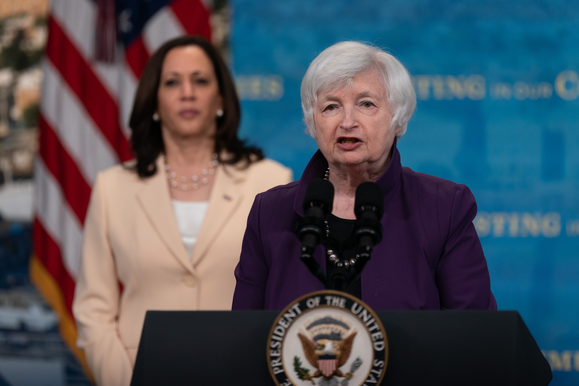 珍妮特·耶伦和卡玛拉·哈里斯于2021年6月在华盛顿特区。