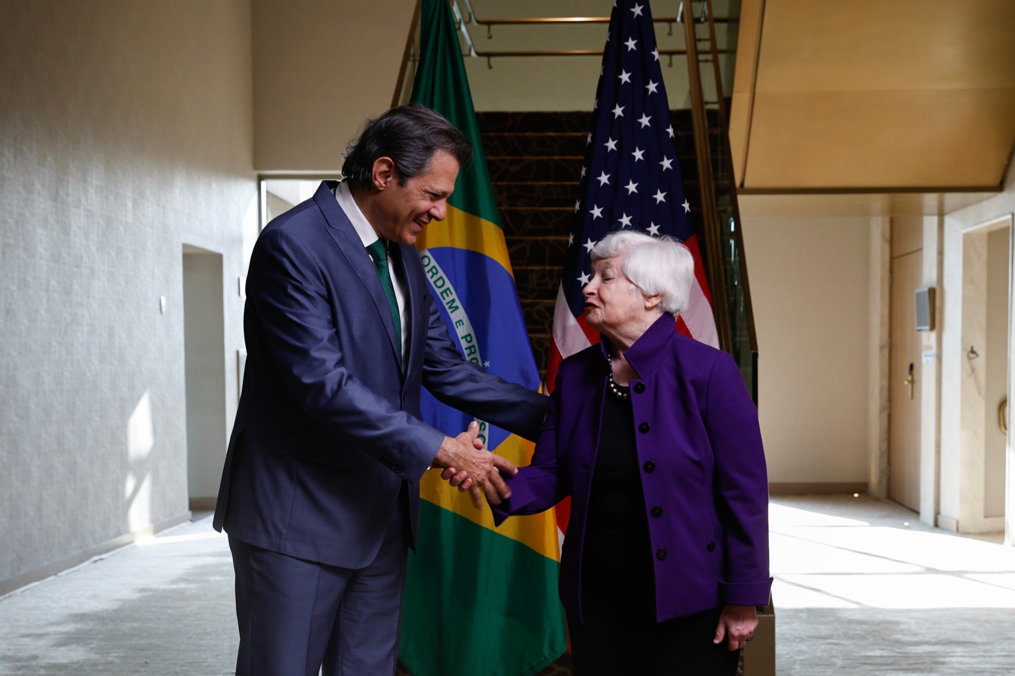 费尔南多·哈达德和珍妮特·耶伦在巴西里约热内卢于7月24日举行的二十国集团财政部长和央行行长会议前。摄影师:Dado Galdieri/Bloomberg“哈里斯副总统显然深刻理解让美国家庭能够茁壮成长并取得成功所需的条件,”耶伦说,几乎是在背书 — 即使她提到了适用于行政部门官员和竞选活动的哈奇法案。
