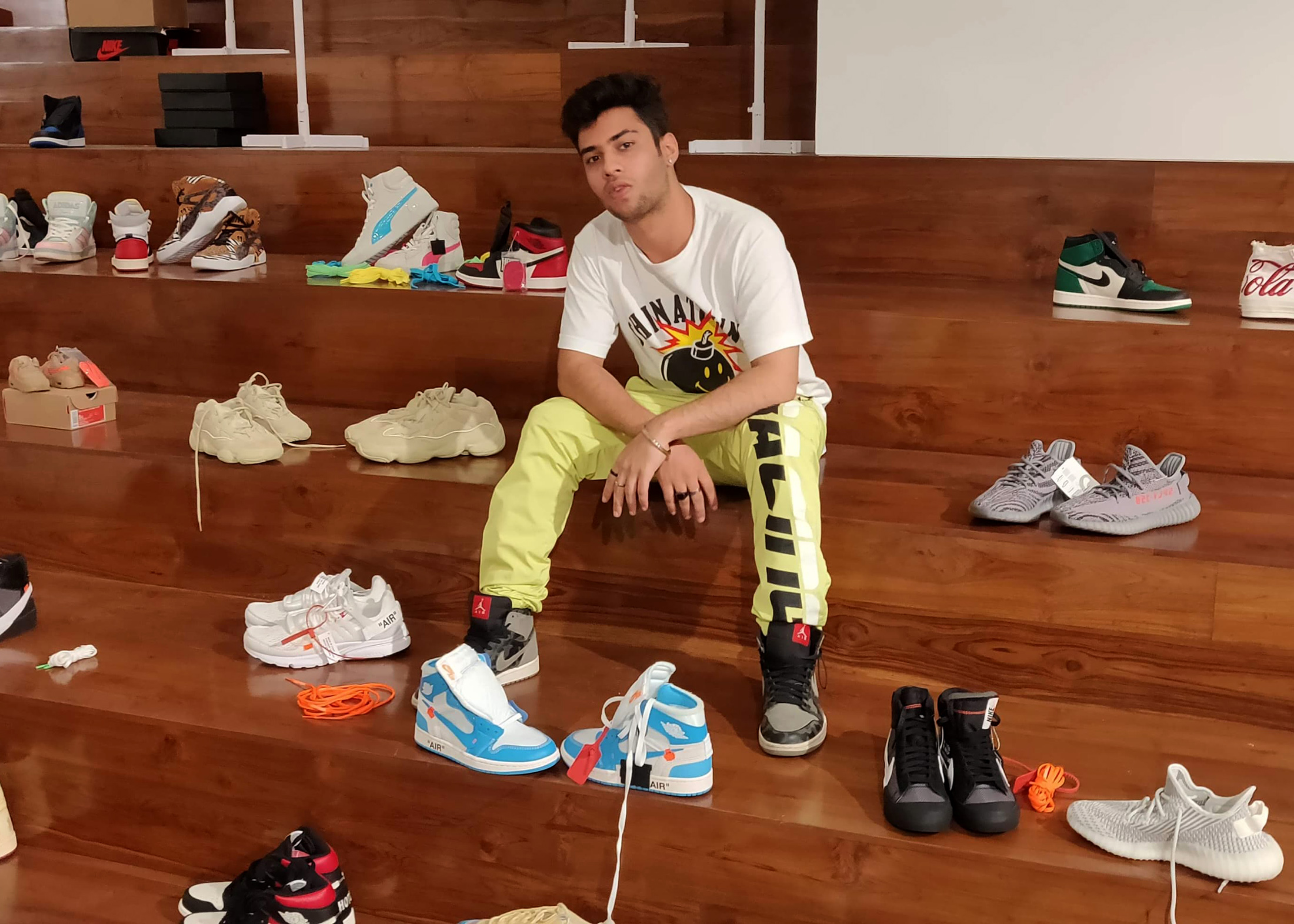 在孟买一个邻近几位名人居住的社区的几个街区之外,Anchit Kapil经常邀请电影明星、板球运动员和意见领袖来参观他的复古和限量版运动鞋收藏。他的商店墙上陈列着大约600双色彩鲜艳的Air Jordans、Dunks和Louis Vuittons,有些售价高达11000美元,被精心展示为艺术品。