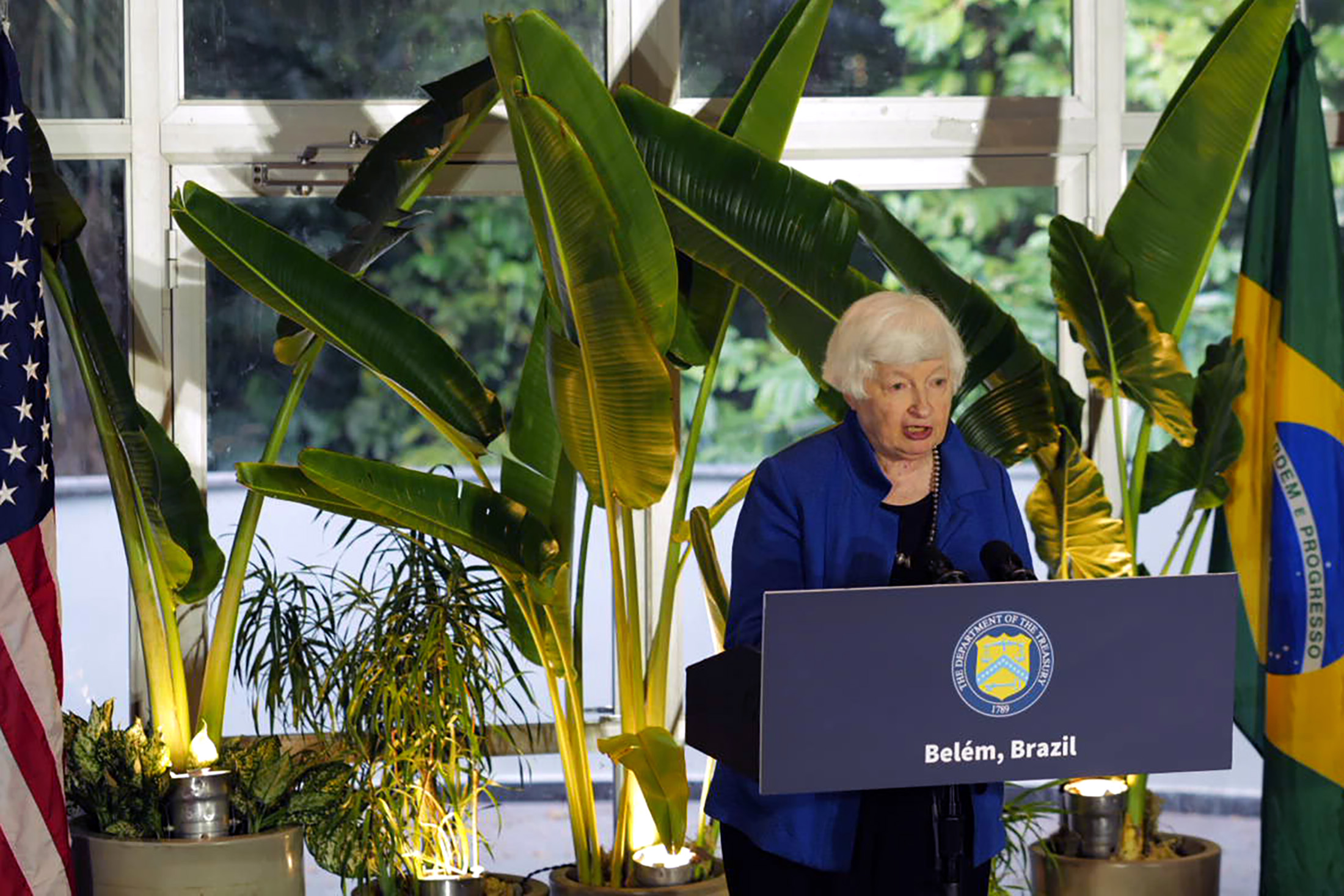 珍妮特·耶伦在巴西帕拉州贝伦举行的美洲开发银行亚马逊流域会议上发言,时间为7月27日。