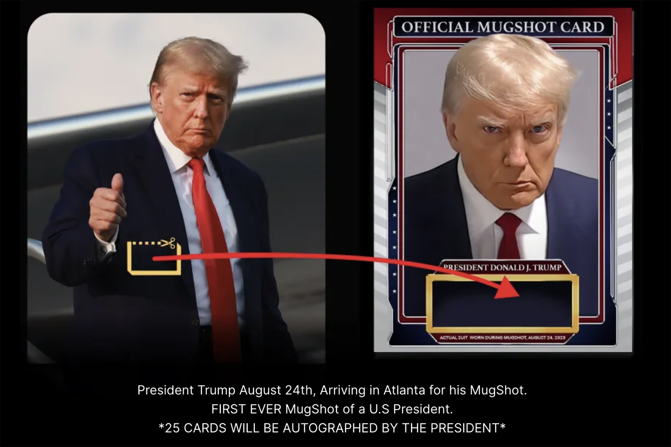 特朗普交易卡网站为NFT购买提供现实世界的福利,包括一张实体交易卡,上面有他于2023年8月24日在乔治亚州富尔顿县的警察照片中穿的一件西装的一部分。来源:collecttrumpcards.com只有时间会告诉我们特朗普是否会赢得第二个任期,并提供行业所期望的更有利的监管环境。目前在Polymarket上的下注显示,特朗普是赢得胜利的热门人选,暗示着57%的概率。如果他赢得胜利,友好的监管者可能不是他对该行业的唯一馈赠。在纳什维尔,特朗普表示,他将命令政府不出售在刑事案件中查封的加密货币,而是将其作为他所称的战略比特币储备的基础。然而,特朗普在未确认计划下令政府购买高达100万个代币后,比特币放弃了他在讲话前的涨幅,他的对手罗伯特·F·肯尼迪周五告诉会议,特朗普可能会宣布这一计划。与此同时,即使在繁忙的竞选日程中,特朗普也一直在策划他自己的加密企业的下一步。第四个特朗普NFT系列正在筹备中,Zanker表示他希望在八月份推出,承诺这将是“有史以来最大、最好的”系列,其中“有很多惊喜”。(某些过去的购买包括现实世界的福利,如马阿拉哥招待会或特朗普在他的乔治亚选举勒索案中被拍摄时所穿的西装一部分。)“我们在暗杀未遂之前见过他,以便他批准艺术品,”Zanker说。“他看每一幅画。”