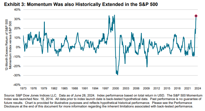 对于那些对更大风险感兴趣的人,标普总结称,主要市场转折点在历史上通常与超大市值股表现极端和动量股表现极端同时发生。因此,他们说:“市场可能发生这样的转折,并成为整体风险的重要驱动因素,这表明对美国大市值股等权重方法的评估可能是及时的。”听起来是对的。