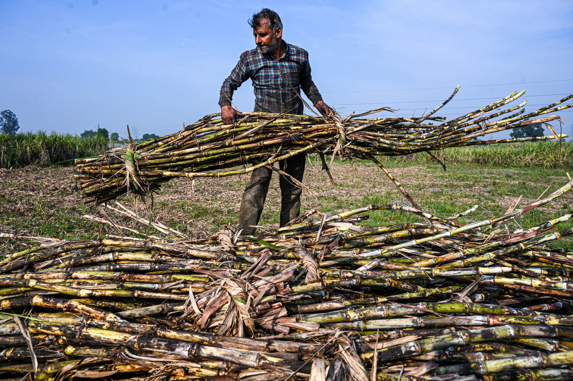 一名工人在印度北方邦梅尔特市的拖拉机拖车上装载收割的甘蔗。摄影师:Prakash Singh/Bloomberg### 其他主要农作物