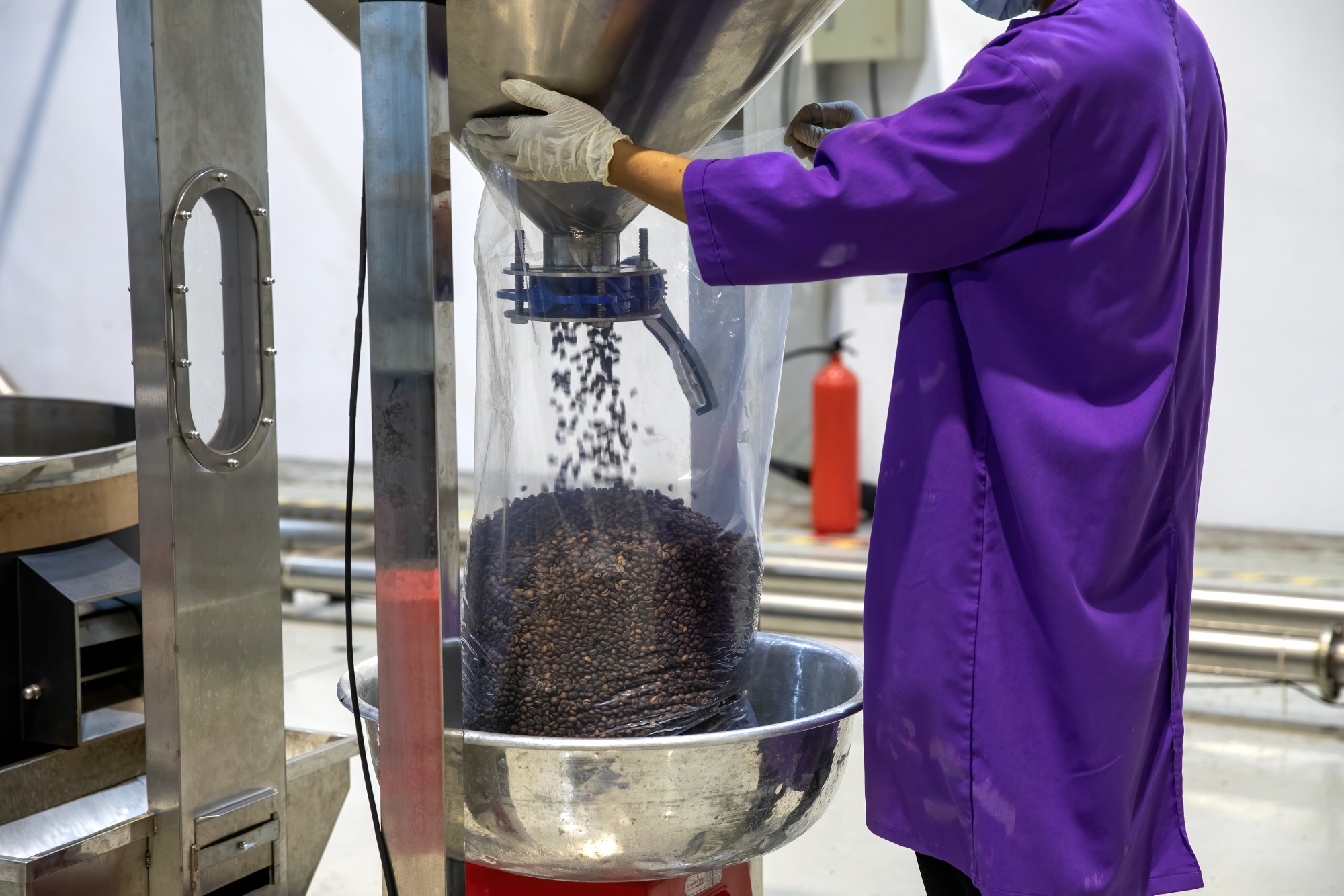 一名工人在越南东奈省tran-Q咖啡工厂包装烘焙的罗布斯塔咖啡。摄影师:Maika Elan/Bloomberg### 糖