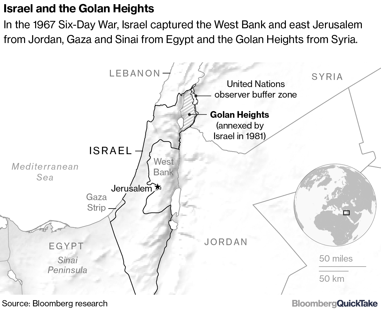 以色列在1967年的战争中夺取了这片领土,当时它与埃及、叙利亚和约旦等阿拉伯国家作战,这些国家都在1948年拒绝承认犹太国家的建立。以色列还从约旦军队手中夺取了约旦河西岸和东耶路撒冷,从埃及军队手中夺取了加沙地带。1981年,在总理梅纳赫姆·贝京的领导下,以色列吞并了戈兰高地,这一举动未得到国际认可。2019年,美国在时任总统唐纳德·特朗普的领导下,有争议地承认了以色列在那里的主权。