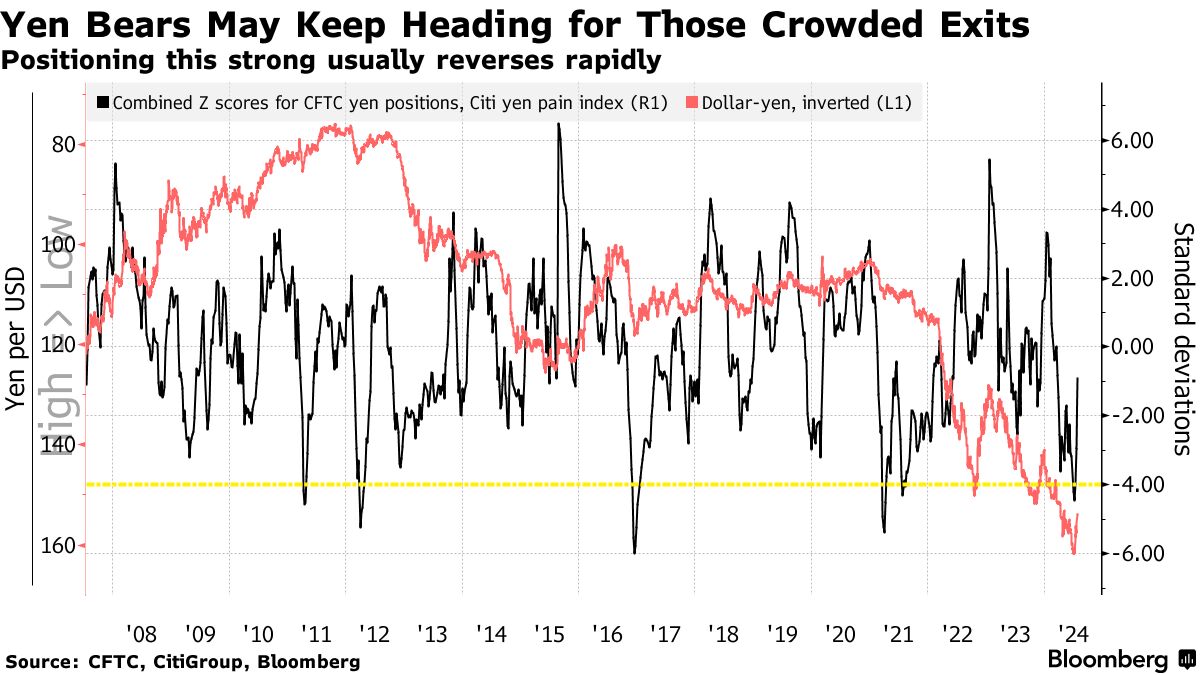 - 日元强劲反弹是一个强烈的风险,可能引发新一轮的清盘交易。本月看到美元/日元与标普500指数之间的相关性自2023年第二季度以来首次转为正值,当时全球银行业动荡引发了衰退担忧。
