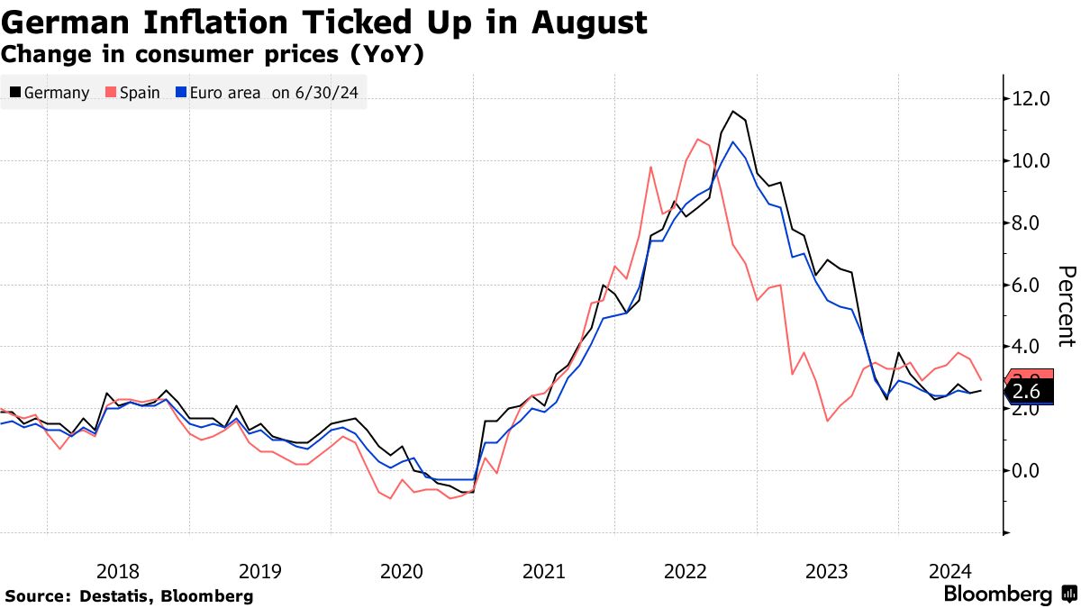 欧盟经济:德国通胀意外加快,挑战欧洲央行 - 彭博社