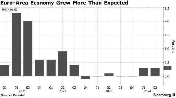欧元区增长在第二季度超出预期,关键国家的持续扩张超过了德国出现的意外萎缩。