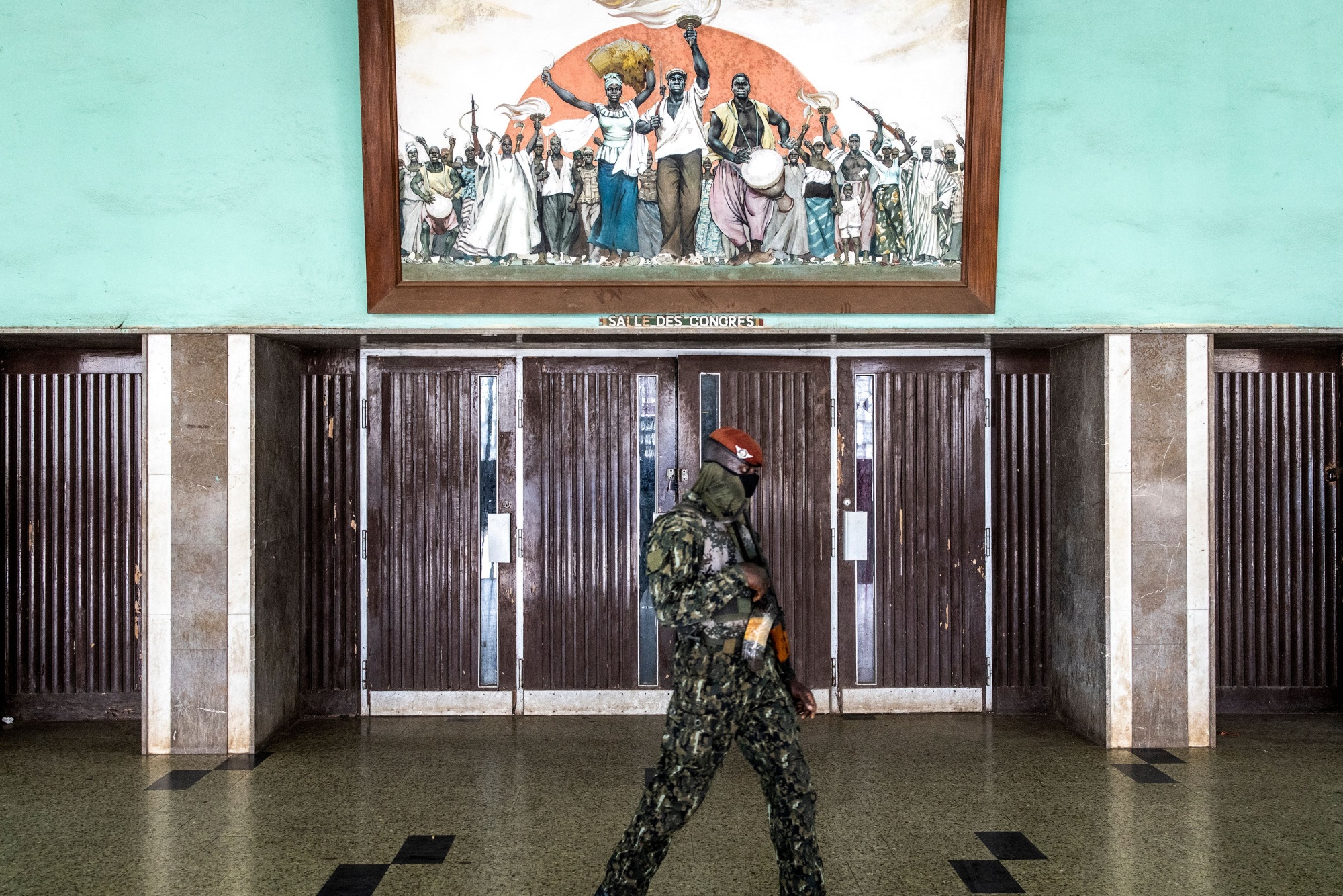几内亚特种部队成员在科纳克里人民宫巡逻。