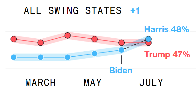 卡玛拉·哈里斯在最新的彭博新闻/晨间咨询民调中显示,已经在七个摇摆州中消除了唐纳德·特朗普的领先地位,这得益于年轻人、黑人和西班牙裔选民的热情。消除了。
