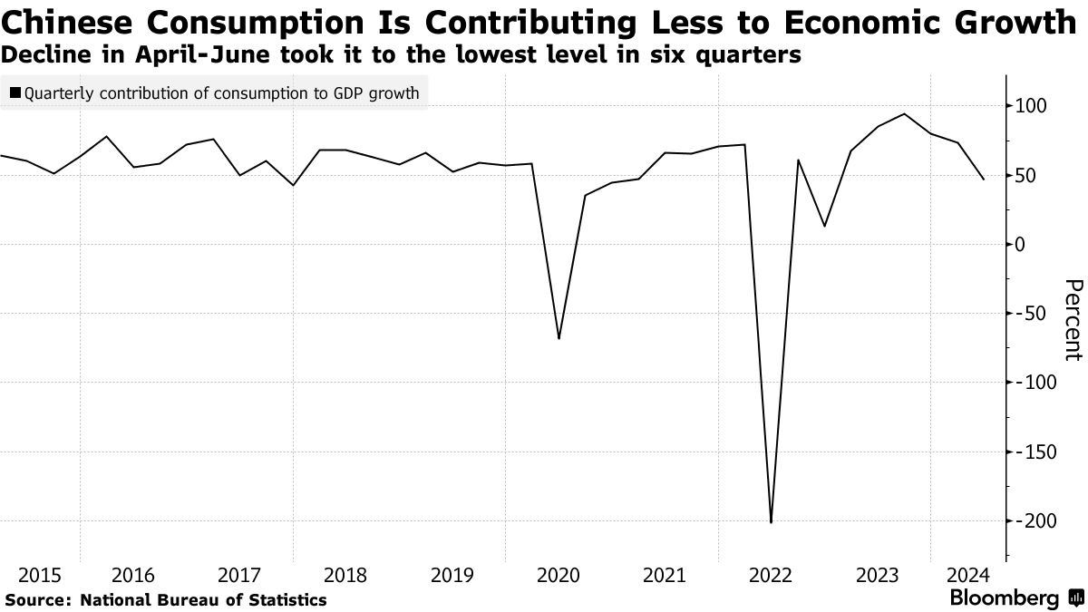 自2022年底以来,消费贡献不到中国17万亿美元经济增长的一半,这是第一次,第二季度,全球范围内持续低迷的前景引起共鸣。国内消费的阴霾已经让美国咖啡连锁店星巴克公司、法国美容巨头欧莱雅集团以及日本迅销公司受到打击,销售额下降,股票估值受到压力。