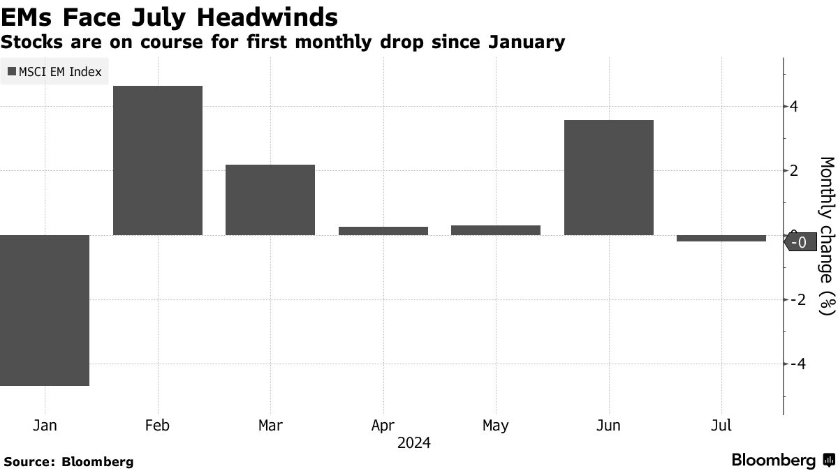 另外,以色列谢克尔连续第三天暴跌,为两年来最大的跌幅,交易员担心哈马斯政治领袖伊斯梅尔·哈尼亚在伊朗领土上被杀引发了更广泛的中东战争的危险。根据彭博社编制的数据,该国的美元债券是新兴市场中表现最差的。新兴市场货币指数上涨了0.3%。