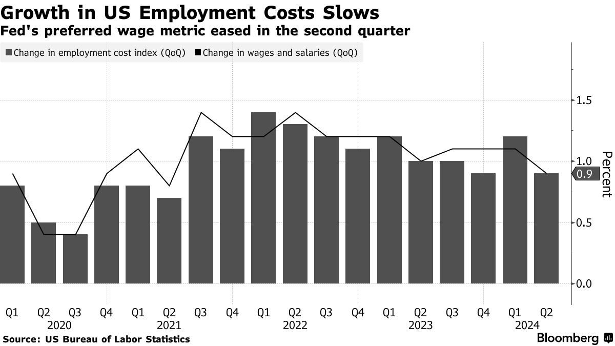美国劳动力成本增长的广泛指标在第二季度比预期降温,这一指标备受美联储关注,支持逐渐减轻通胀压力的趋势。