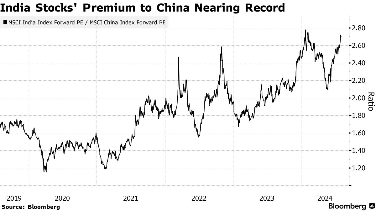 印度股票正提升吸引力作为一个稳定的选择。尽管近年来国内资金推动了涨势,但印度承诺的快速稳定增长使得投资者很难忽视当地股票,即使它们的估值很高。今年早些时候,一些投资者从印度转向更便宜的中国股票,但这一策略并不成功。现在,印度股票正朝着重获对中国股票的溢价的方向发展。