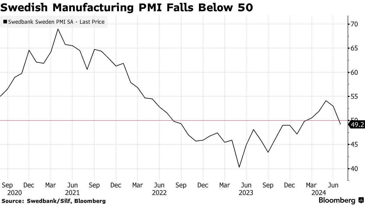 瑞典制造业活动在7月意外下滑,打消了经济迅速复苏的希望,因为该指数首次在五个月内跌入收缩区域。