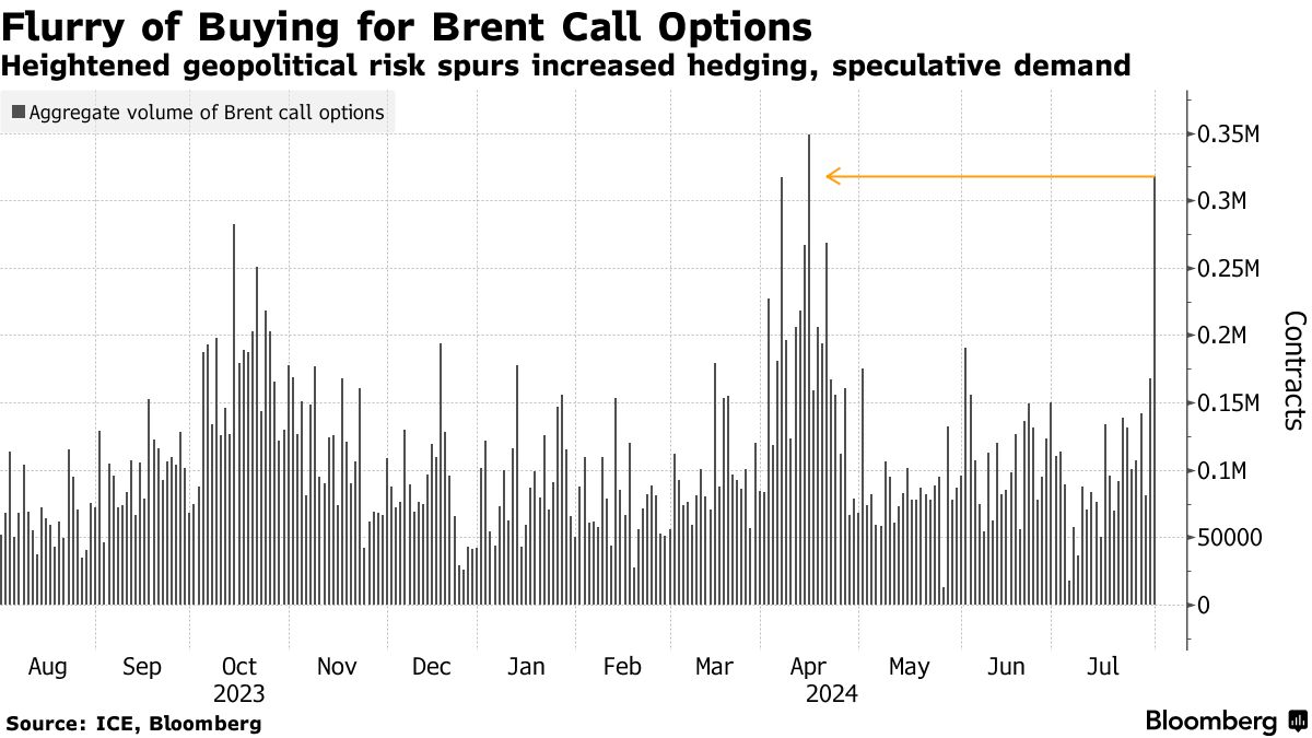石油交易商在中东紧张局势升级的情况下大量购买看涨期权,这可能导致价格激增。