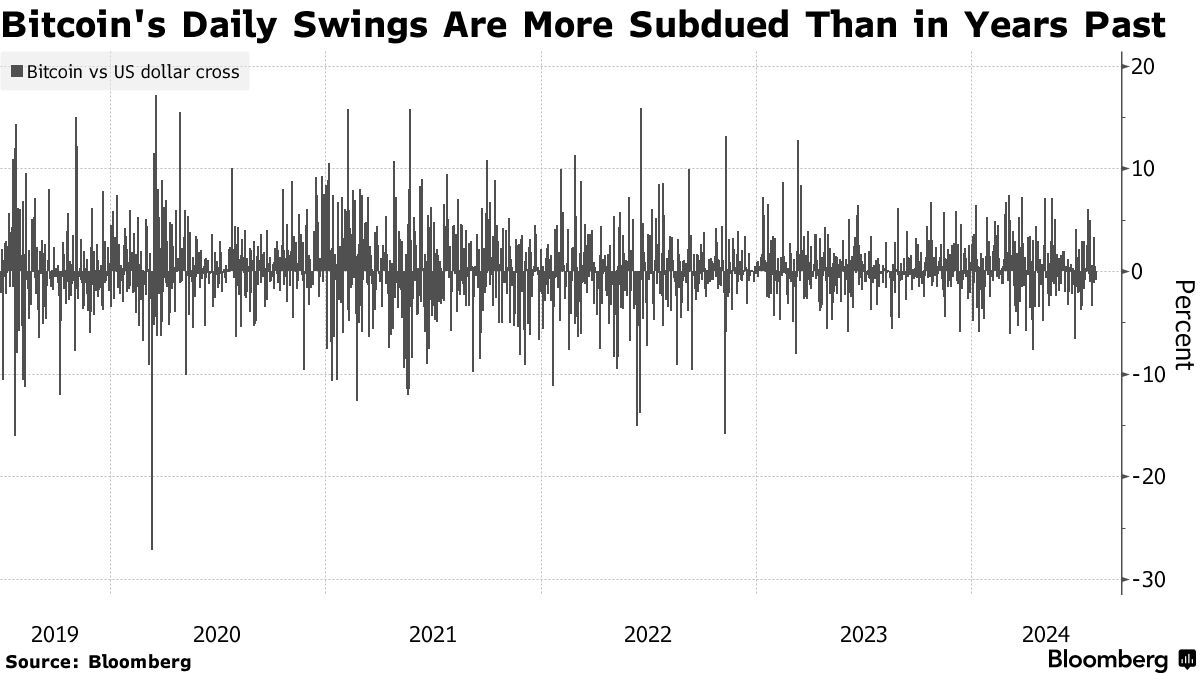 据研究机构CCData称,数字资产的30天平均波动率今年迄今为52%左右。这比2021年上次牛市运行期间的79%有所下降。