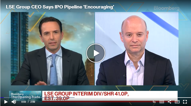 最后, LSE 集团 股价也在上涨,首席执行官大卫·施瓦默指出鼓舞人心的IPO项目管道。