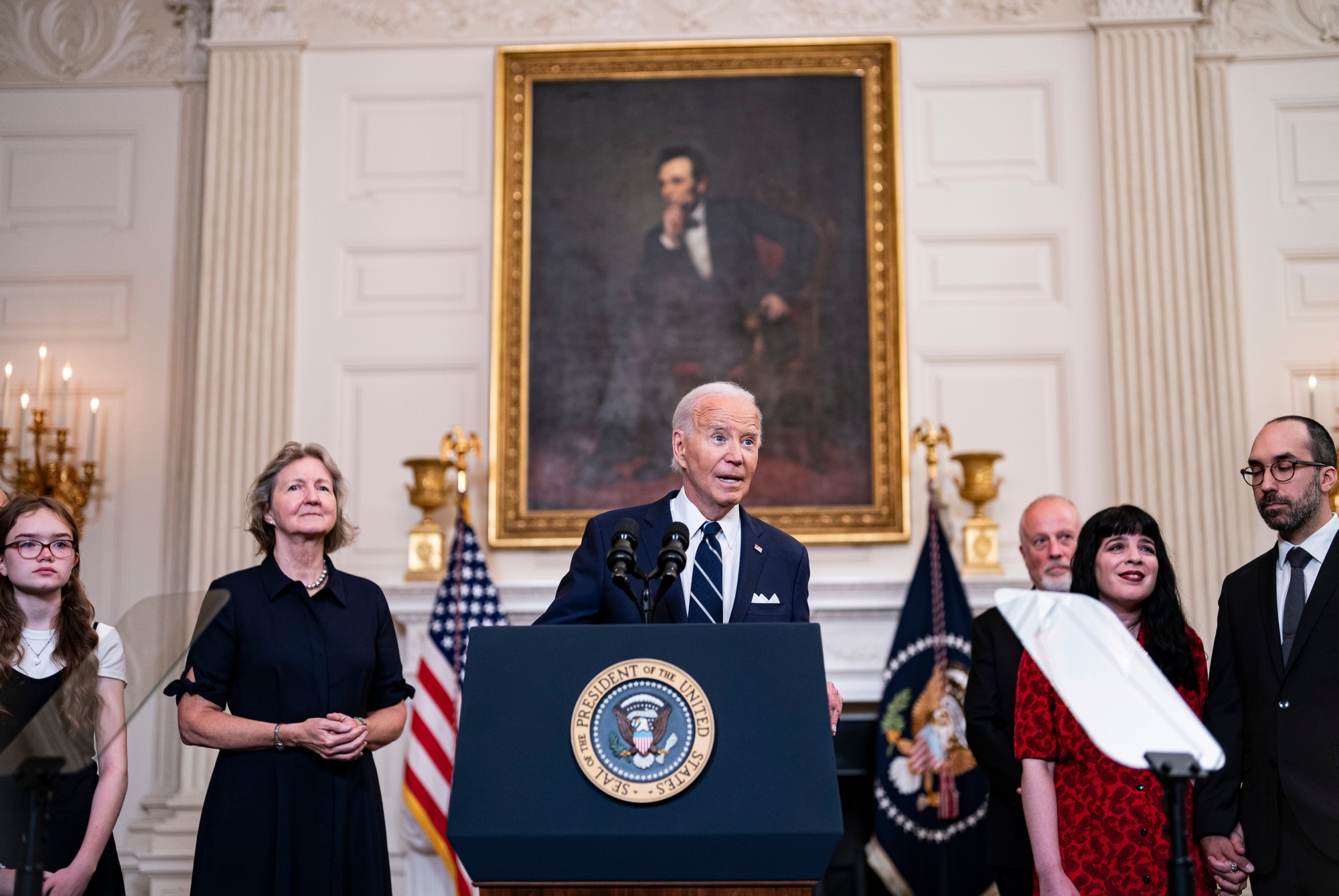 美国总统乔·拜登,周四在白宫与一些在与俄罗斯进行的囚犯交换中获释的家属一起。摄影师:Al Drago/Bloomberg### 明天你需要知道的事情