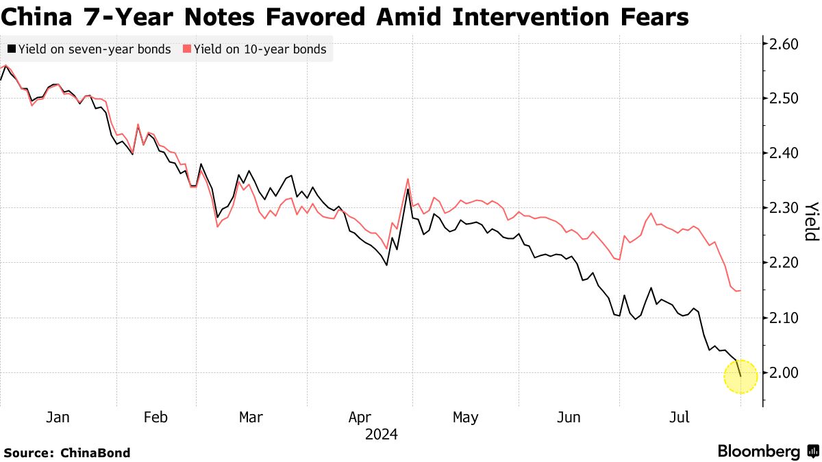 随着投资者涌入受到房地产危机和需求疲软压力的经济中的避险资产,中国收益率一次又一次刷新历史新低。政策制定者削减了一系列利率,并承诺通过本周降低融资成本进一步支持增长。