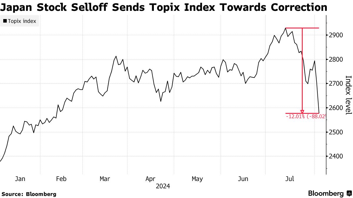 - 日经指数自国家暴跌进入第二天以来跌幅最大。在韩国,SK海力士的股价下跌了10%。亚太地区MSCI指数下跌了3.5%,创下自2021年2月以来的最大跌幅。