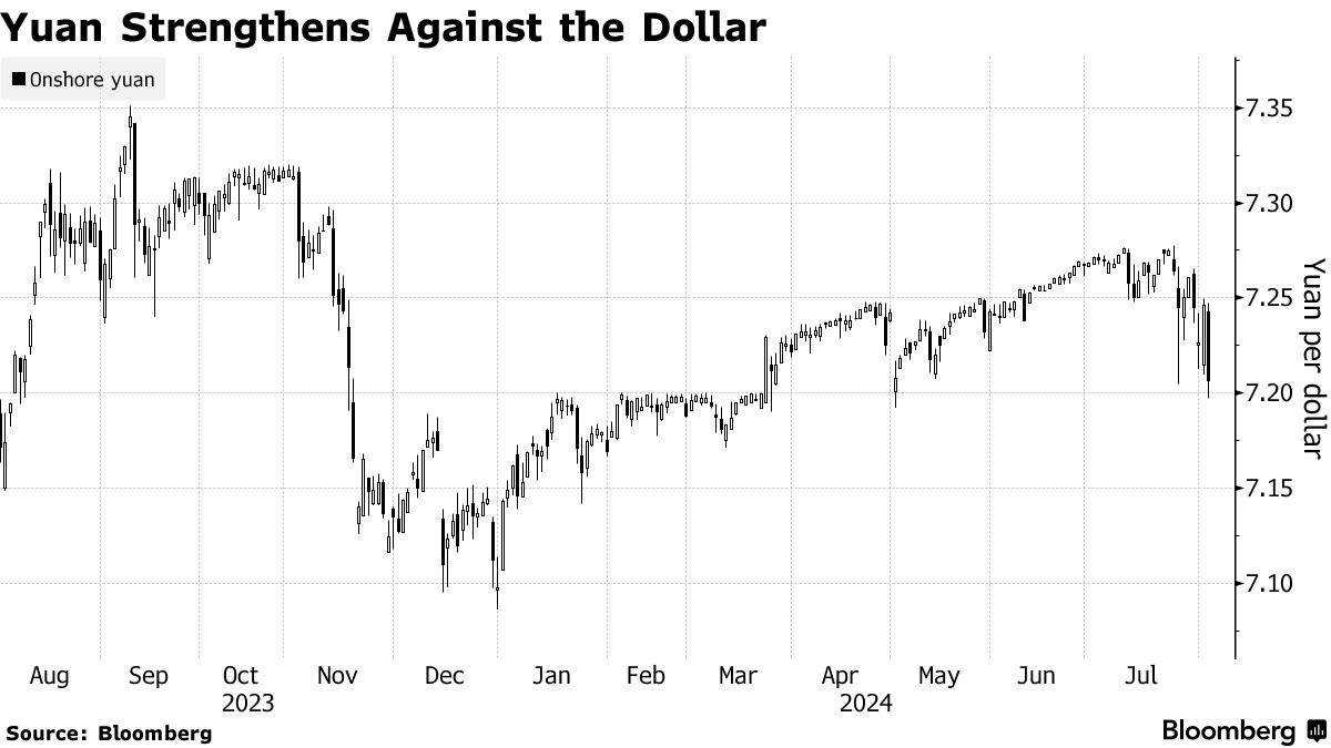中国的人民币升至五月以来的最高水平,因为交易员们在区域货币反弹和美国降息前景增强的情况下放弃了空头押注。