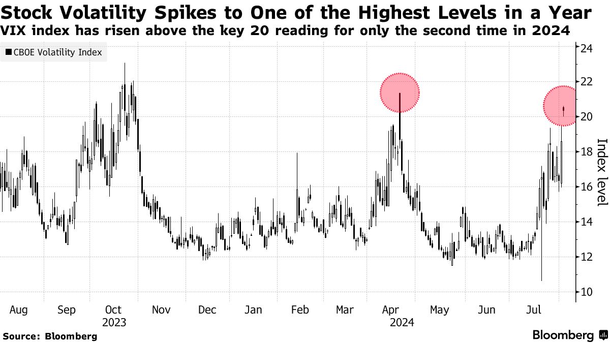 由于投资者越来越确信美国央行将不得不在下半年迅速放宽政策,股市已经显示出疲弱迹象。这种回撤引发了股市的波动,芝加哥期权交易所波动率指数在2024年仅第二次超过关键的20水平。