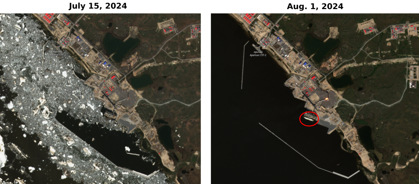 诺瓦泰克公司,该设施的领导者,尚未对船只的到达发表评论,而由哨兵2号卫星拍摄的图像并未确认液化天然气正在装载。
