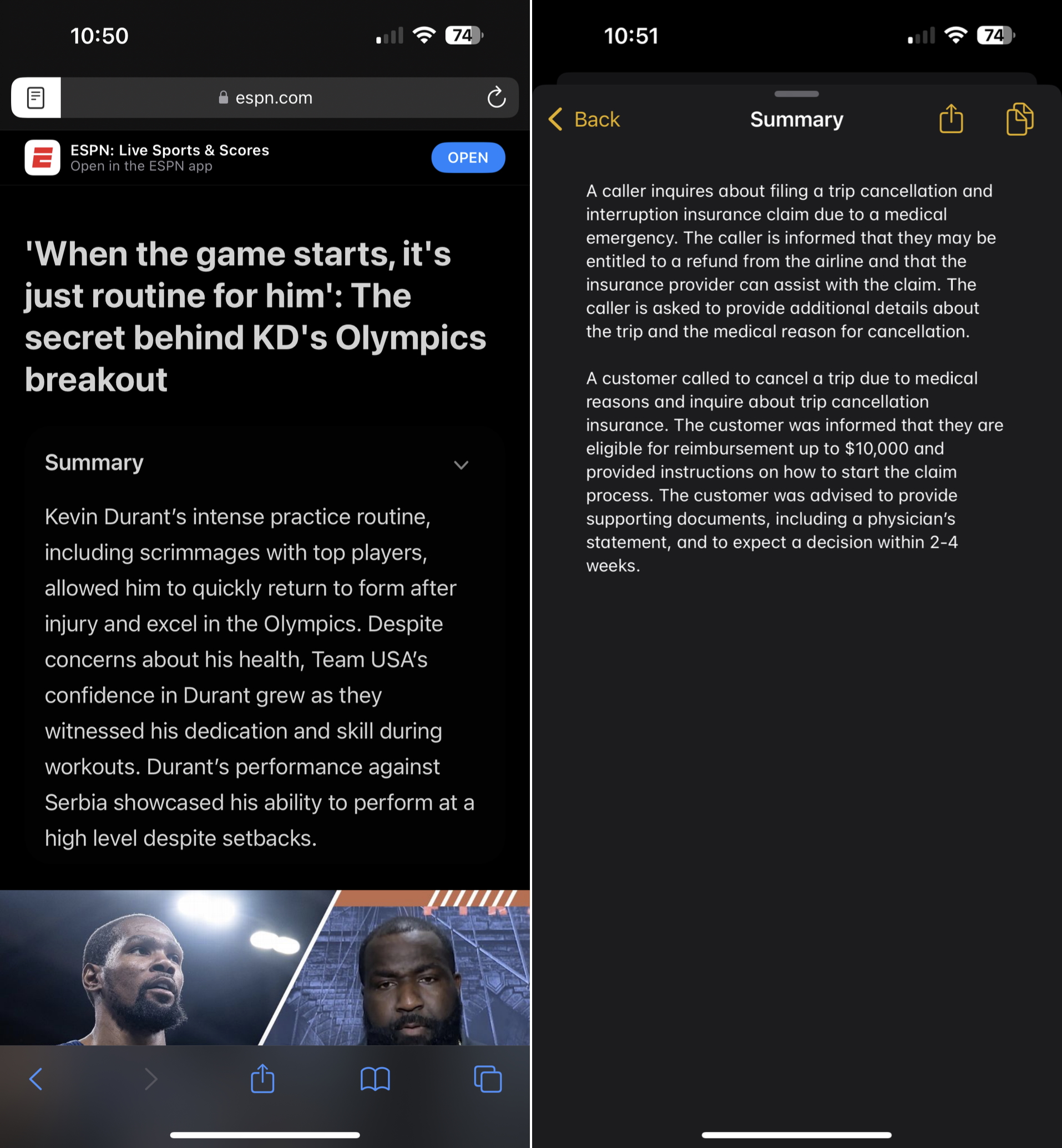 - 可以录制电话通话,然后自动转录和总结。转录也在语音备忘录应用中,但这在早期的iOS 18测试版中就已经存在。
