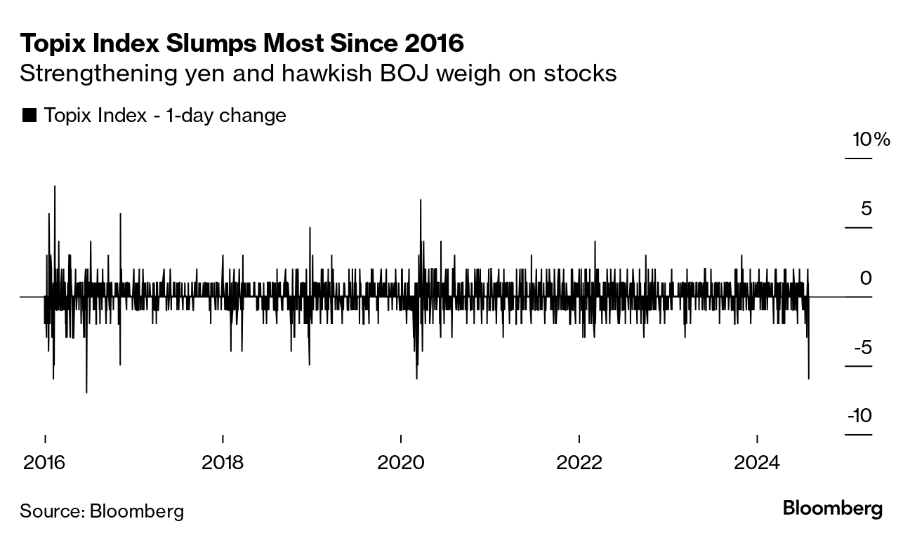 - 日本央行加息引发了一波波动,周三东证指数上涨1.5%,但在周四和周五又大幅下跌。
