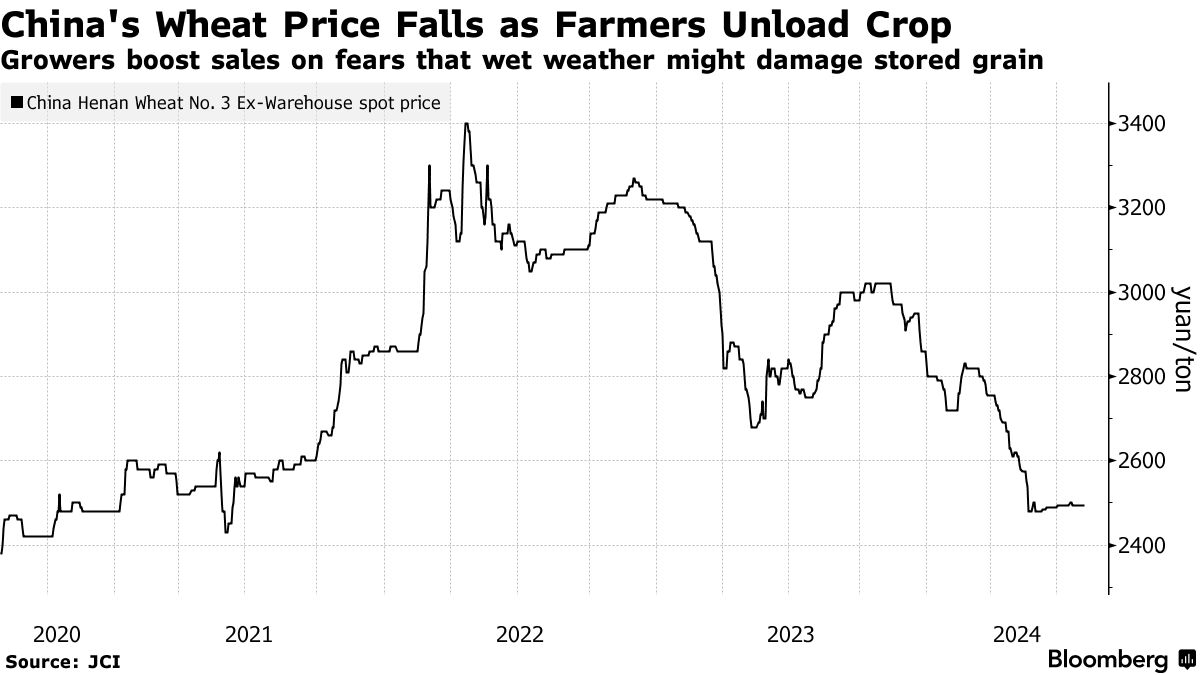 中国正在加大国家对小麦的采购,以支持当地价格,因为大雨迫使一些农民将他们的作物卸入已经堆满谷物的市场。上个月在中国北方的小麦主要生产中心的暴雨,加剧了过剩,农民和交易商急于出售,以免作物在储存中受潮损坏。同时,疲软的经济也阻碍了面粉在面条和面包等食品中的消费。