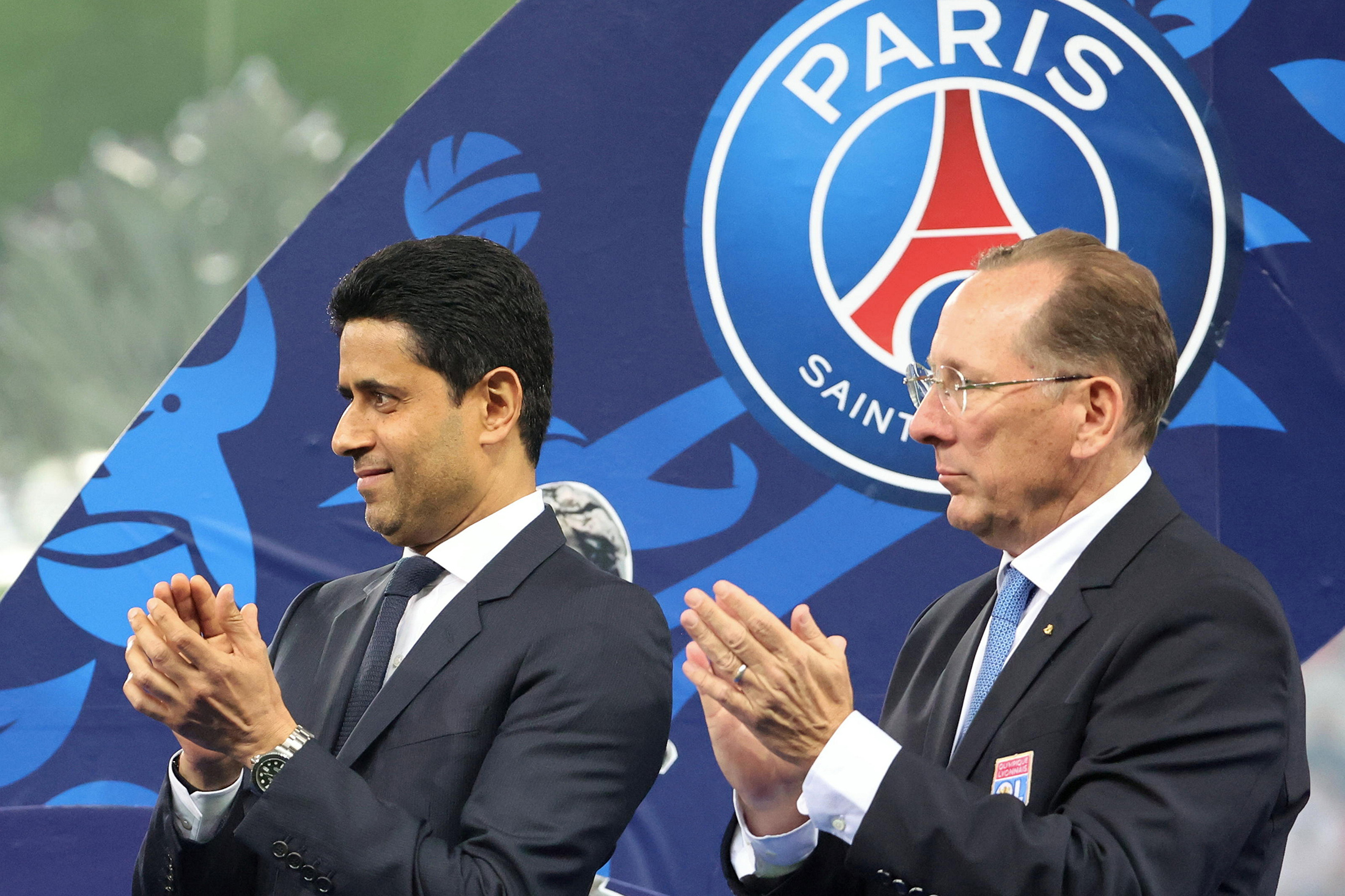 纳赛尔·阿尔-赫莱菲和约翰·泰克托在5月25日里尔举行的法国杯决赛中,奥林匹克里昂与巴黎圣日耳曼的比赛后。摄影师:泽维尔·莱恩/盖蒂图片社阿尔-赫莱菲在足球界的影响力可以追溯到十多年前,当时卡塔尔体育投资公司收购了巴黎圣日耳曼的多数股权。如今,这位50岁的人还担任欧洲俱乐部协会的主席,该机构代表着650多家职业足球队。在2021年,他是对注定失败的超级联赛项目进行批评的最积极的声音之一,该项目旨在改变欧洲足球。