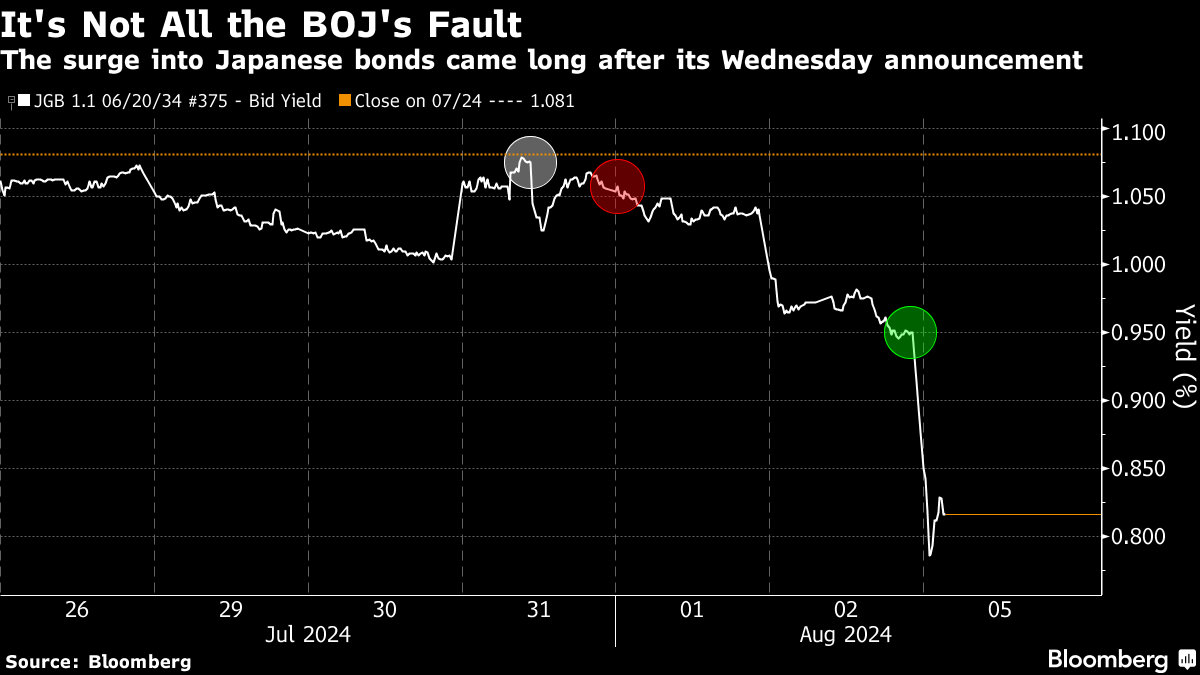 日元的突然逆转,既受到美国收益率下降的驱动,也受到日本央行在七月会议上采取的鹰派立场的影响,是日本股市的另一个特有因素。尽管国内基本面自几周前以来变化不大,但日本股市在美国市场平静之前不太可能逆转。