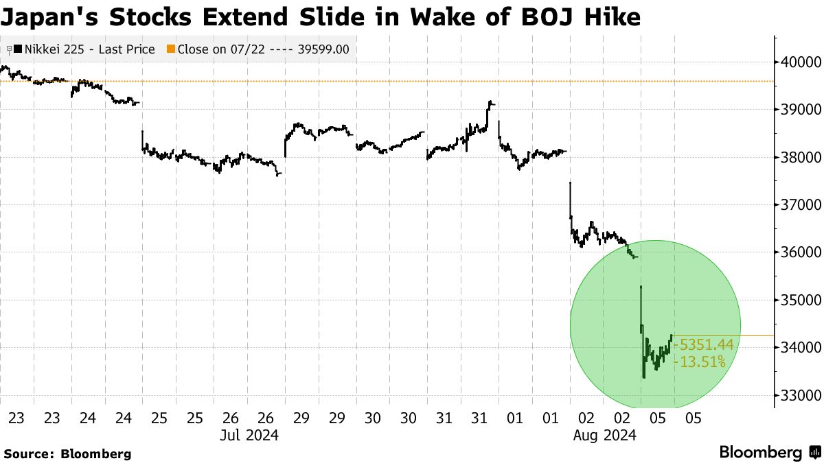 - 东证指数和日经225经历了自1987年以来最糟糕的一天。日本和韩国的熔断机制被触发,全球抛售加剧。即使是预计将从利率上升中受益的日本保险公司和银行也遭受了重大损失。纳斯达克100期货下跌超过6%。
