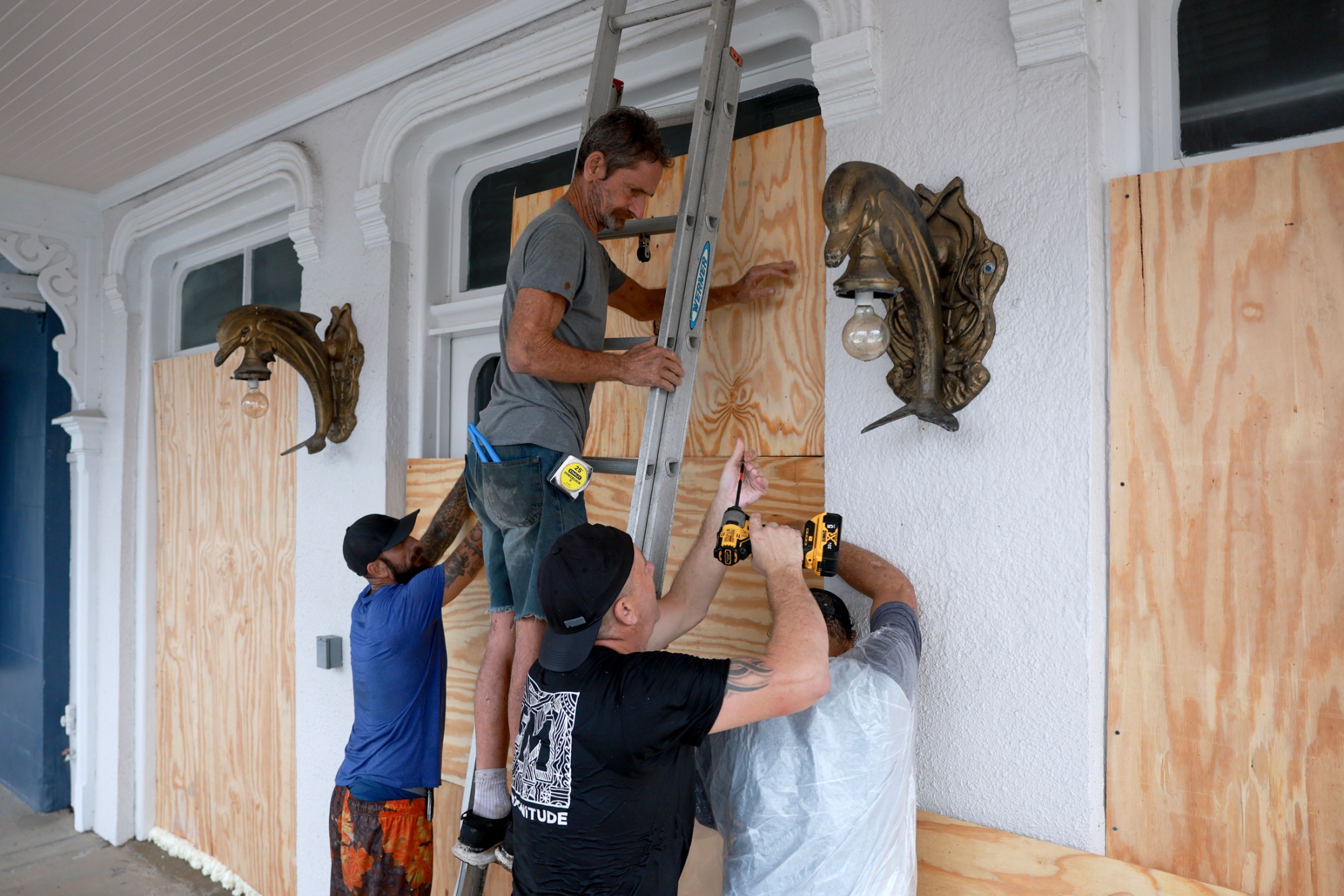 在美国佛罗里达州锡达基的商业机构内,为飓风德比采取的保护措施,时间为8月4日。