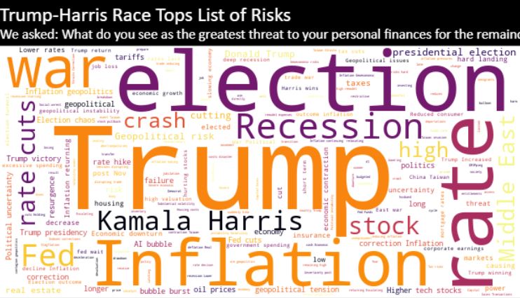 虽然已经拥有房产并在牛市期间投资于风险资产的富裕美国人现在可能仍然过得不错,但调查参与者确实提到了许多可能会打乱盈利现状的担忧。在美国总统选举带来的可能混乱中,许多受访者认为唐纳德·特朗普获胜的后果是2024年其个人财务的最大威胁。