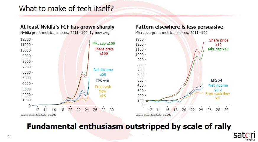 在某种程度上,这也适用于“七大奇迹”。即使我们看这些名字,尤其是英伟达,盈利增长和自由现金流的增长都是惊人的。但你仍然要比较,例如,净收入增长的40或50倍与市值和股价增长超过100倍。