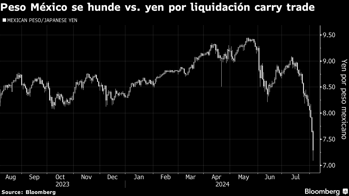 套利交易头寸的清算持续进行;墨西哥比索下跌,日元上涨 - 彭博社