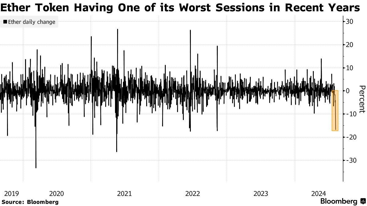 比特币 BTC 遭遇自 2022 年以来最严重的下跌,因全球风险厌恶 - 彭博社